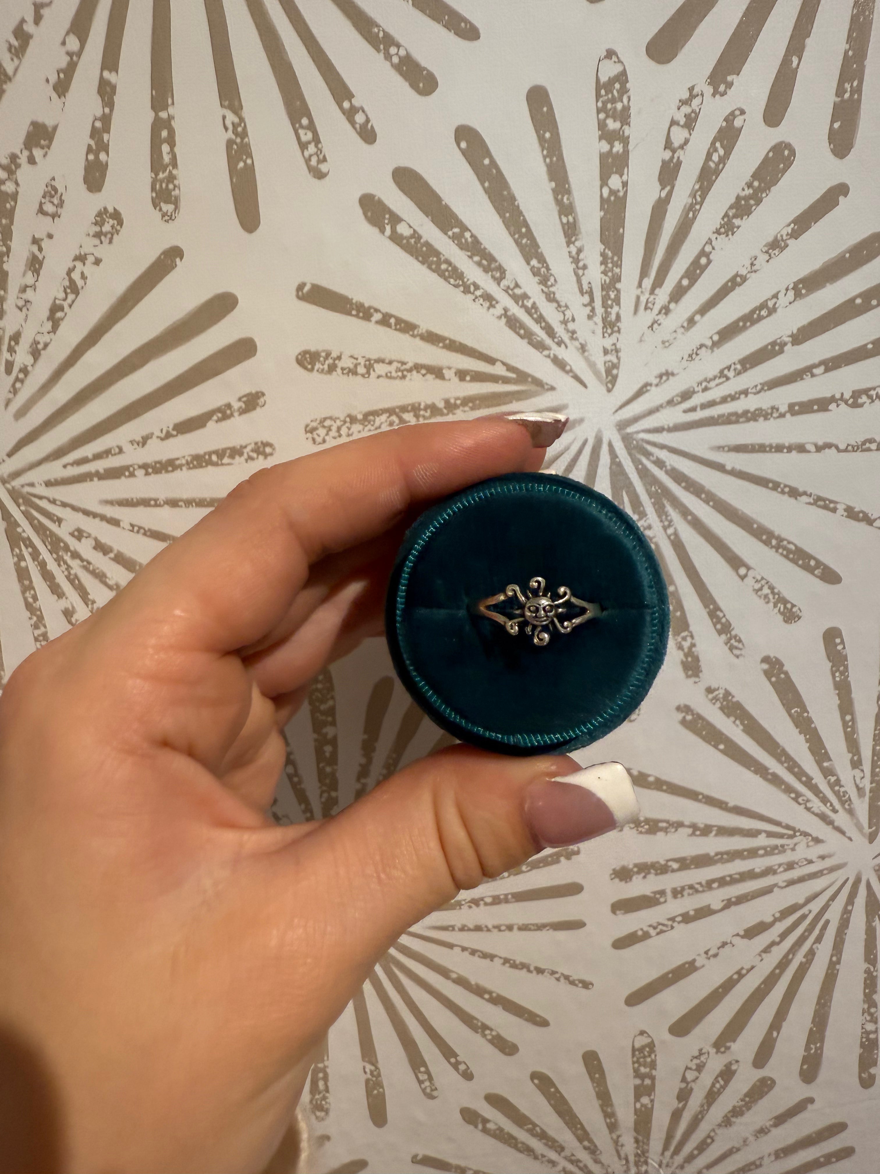 Warm, expressive, and luminous—the Swirly Ray Sun Face Ring is a celebration of light and life, beautifully captured in sterling silver.