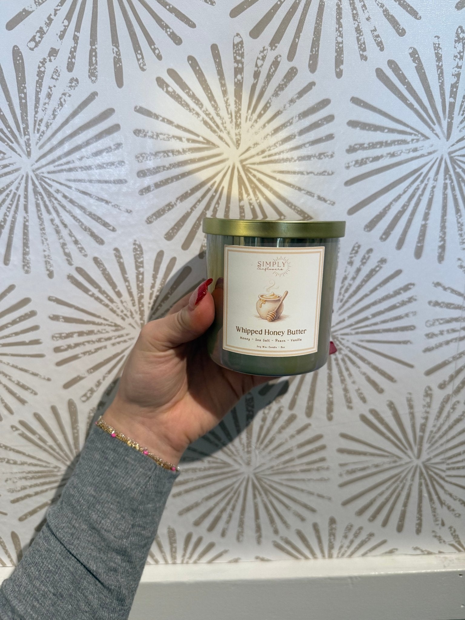This candle opens with the soft, golden aroma of whipped honey, instantly filling the room with a gentle sweetness that feels natural and soothing rather than overpowering. Notes of sea salt add a subtle contrast, balancing the sweetness with a clean, lightly savory edge that elevates the scent and keeps it beautifully grounded. As the candle continues to burn, warm toasted pecan emerges, bringing a nutty richness that feels familiar and comforting, reminiscent of baked treats and cherished family recipes. Finally, smooth vanilla weaves through every layer, wrapping the fragrance in a creamy, buttery finish that lingers softly in the air.