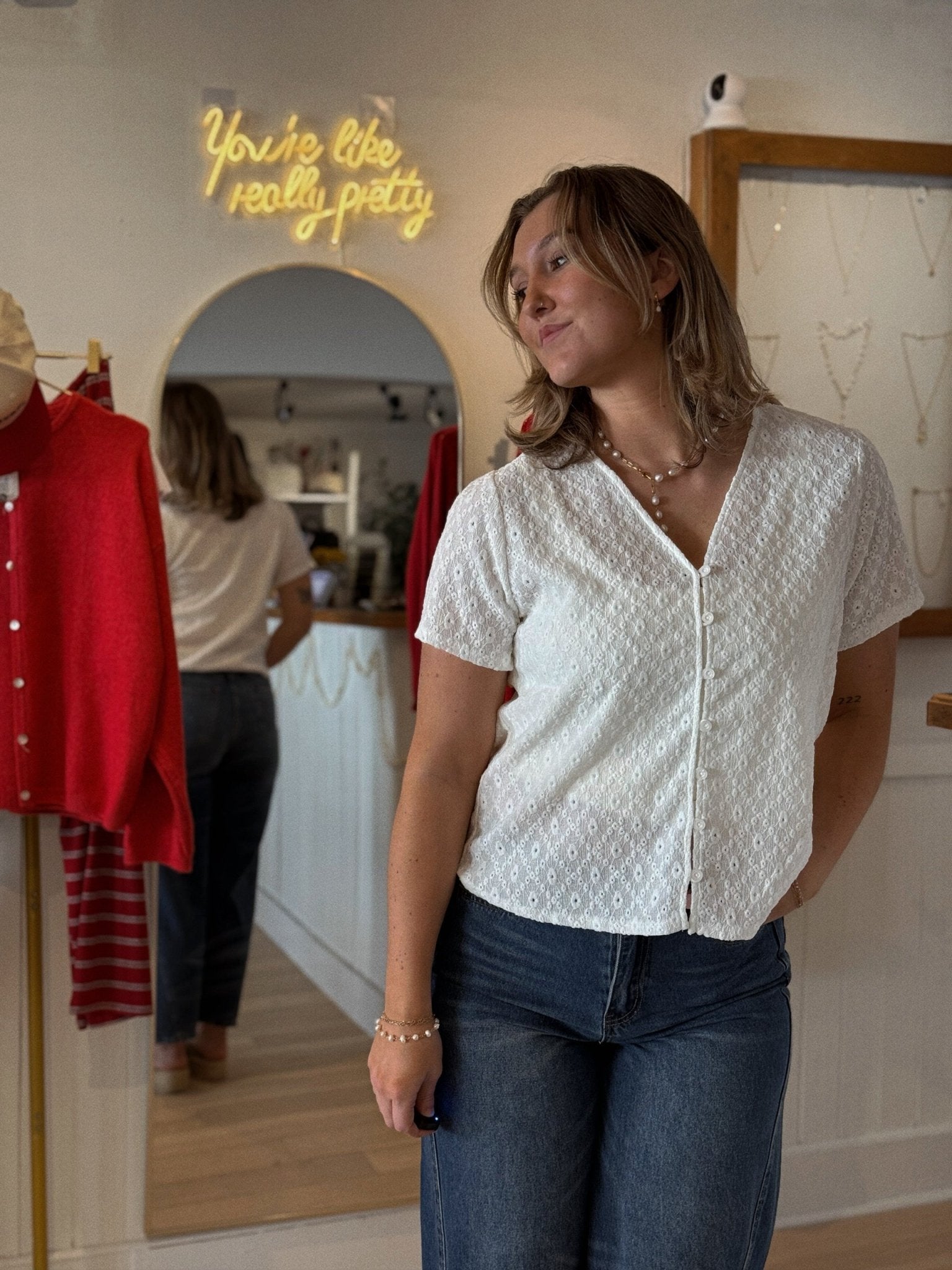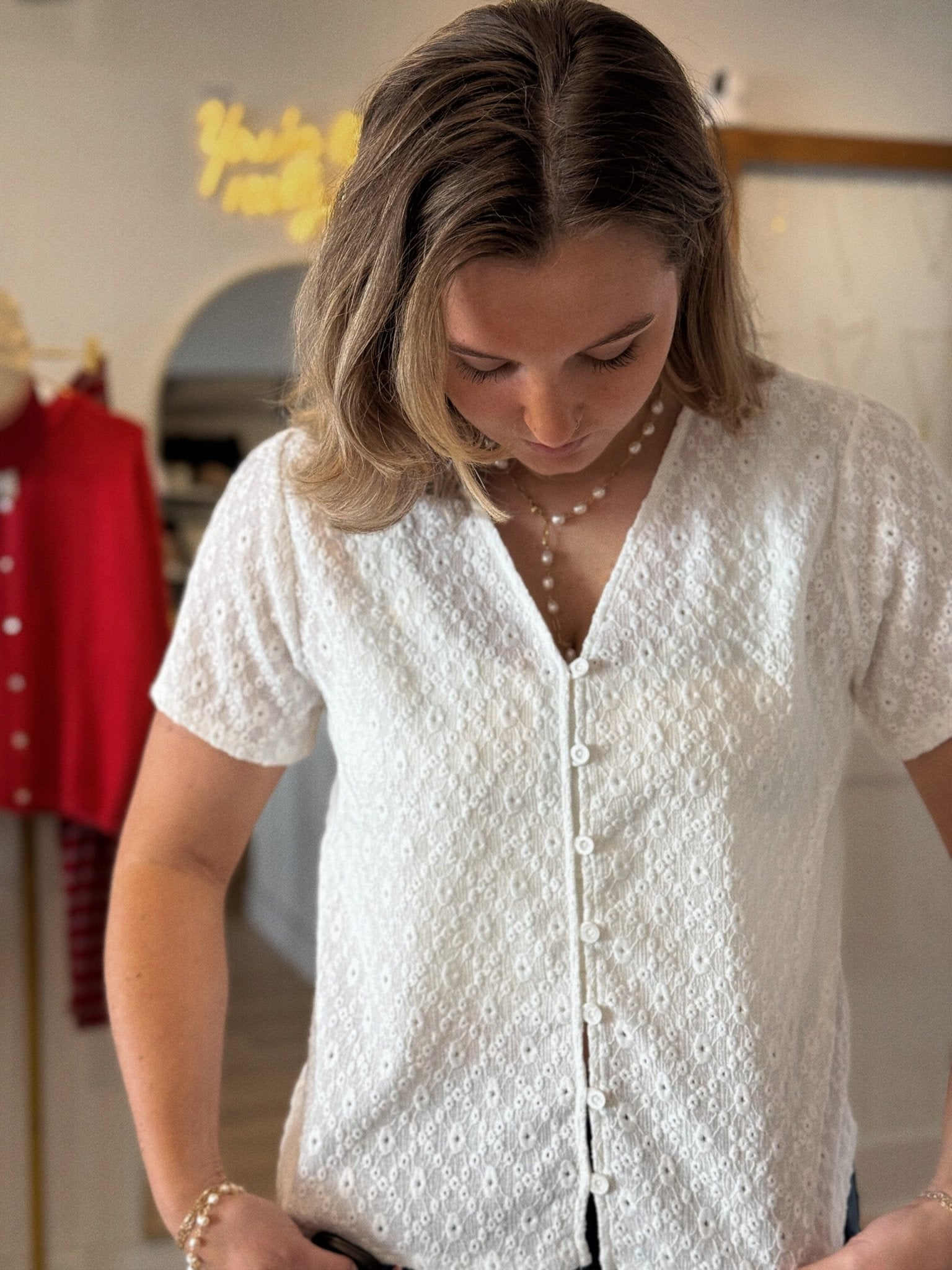 • White floral lace button-up top