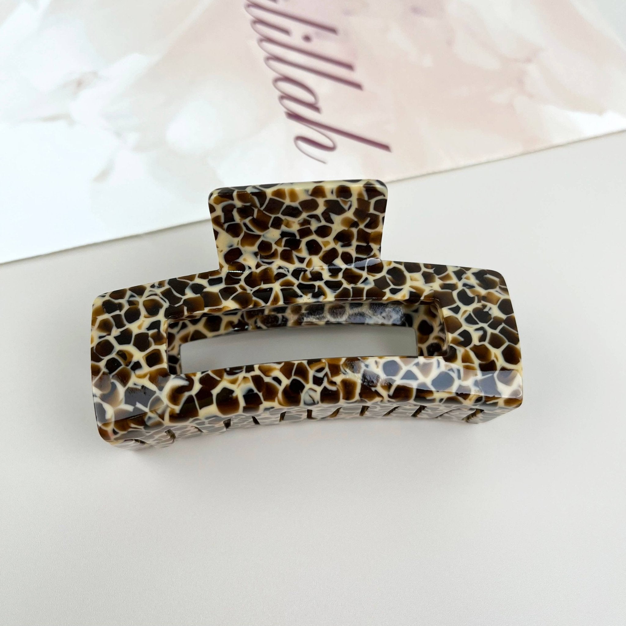Infuse a touch of the wild into your style with our Acetate Leopard Hair Clips featuring a Rectangular Claw Clip design. These chic accessories seamlessly blend animal print allure with contemporary elegance. Offering a secure and trendy hold for your hair, they add a bold and stylish statement to your look.