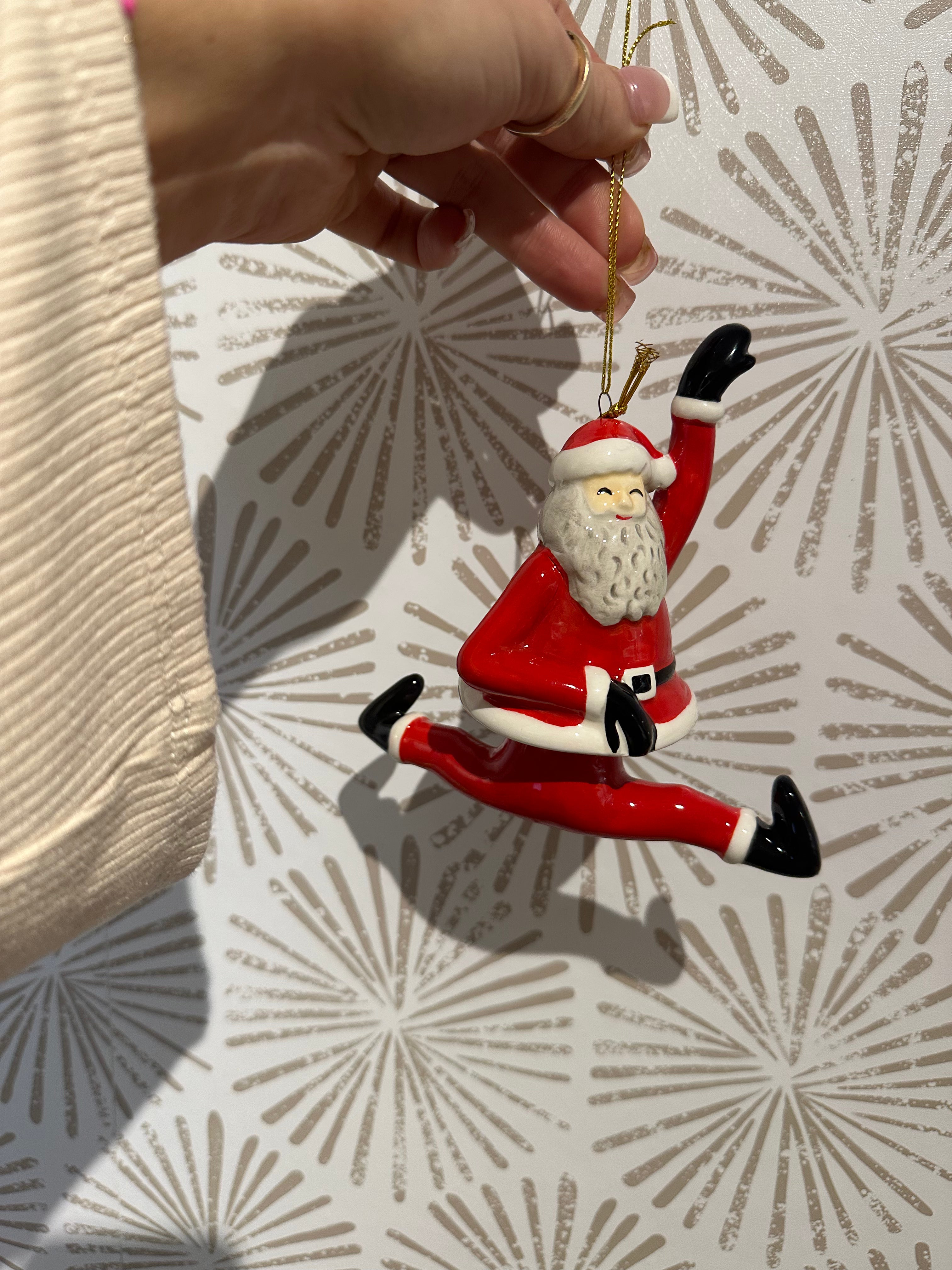 Bring the magic of the holiday season to life with this handcrafted Santa Claus ornament, designed to add cheer, motion, and charm to your festive décor. Featuring a playful dancing silhouette, this ornament jingles and moves, creating a lively accent that delights both children and adults alike. Perfect for adorning Christmas trees, decorating mantels, embellishing wrapped gifts, or adding a festive touch to hooks and displays, this Santa ornament balances whimsical fun with style and elegance.