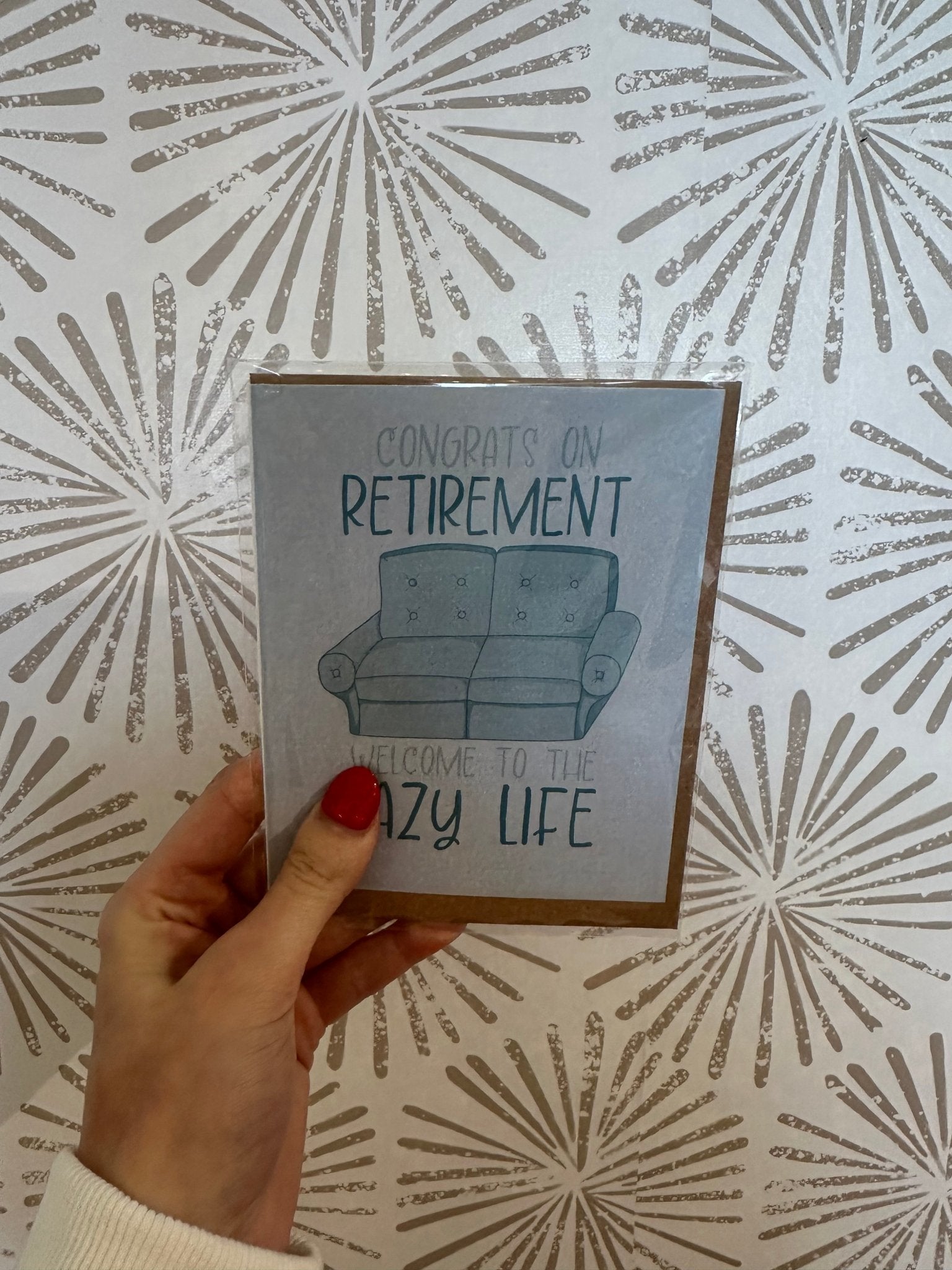 Welcome to a life where every day feels like the weekend - the perfect retirement card for someone who deserves it! -A2 Size (4.25 x 5.5 inches folded). -Printed on premium 16pt thick cardstock with a matte finish. -Paired with a coordinated kraft or holiday color envelope. -BLANK INSIDE -Hand Drawn Categories: greeting cards, retirement greeting cards, retirement cards, leisure, retirement, retirement gifts, coworker cards, goodbye work cards, happy retirement, new beginnings cards, senior living cards, retirement wishes, farewell cards, humor cards, funny retirement greeting cards, life milestone cards, lazy life.