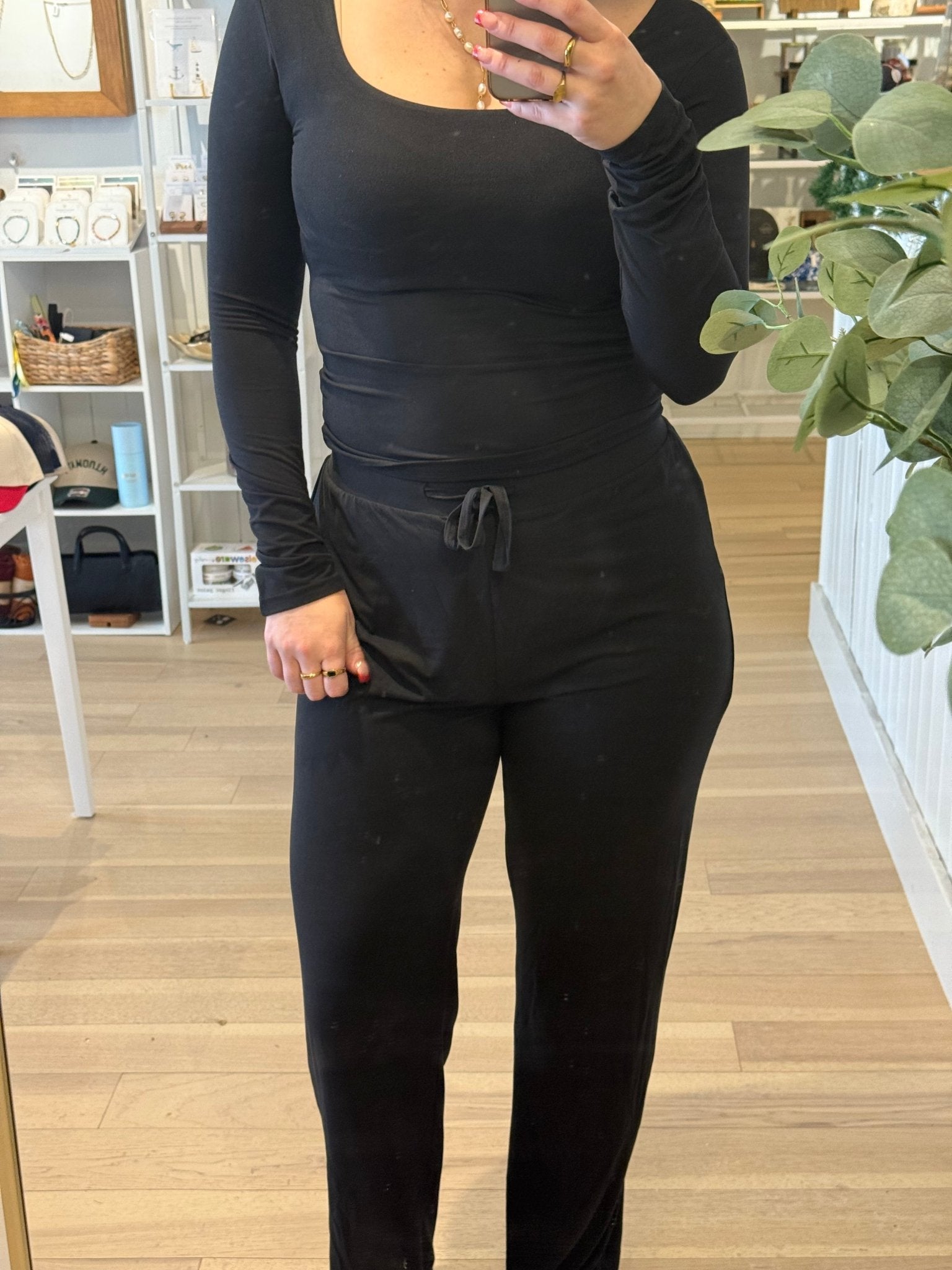 Designed to pair seamlessly with the Do Not Disturb Top or your favorite cozy layers, these pants are incredibly versatile. Style them with a fitted long-sleeve, cropped tank, or oversized sweater for a chic lounge look, or dress them up with sleek sneakers and a jacket for an elevated off-duty outfit. Their minimalist design makes them easy to mix and match, ensuring they become a go-to staple in your wardrobe.