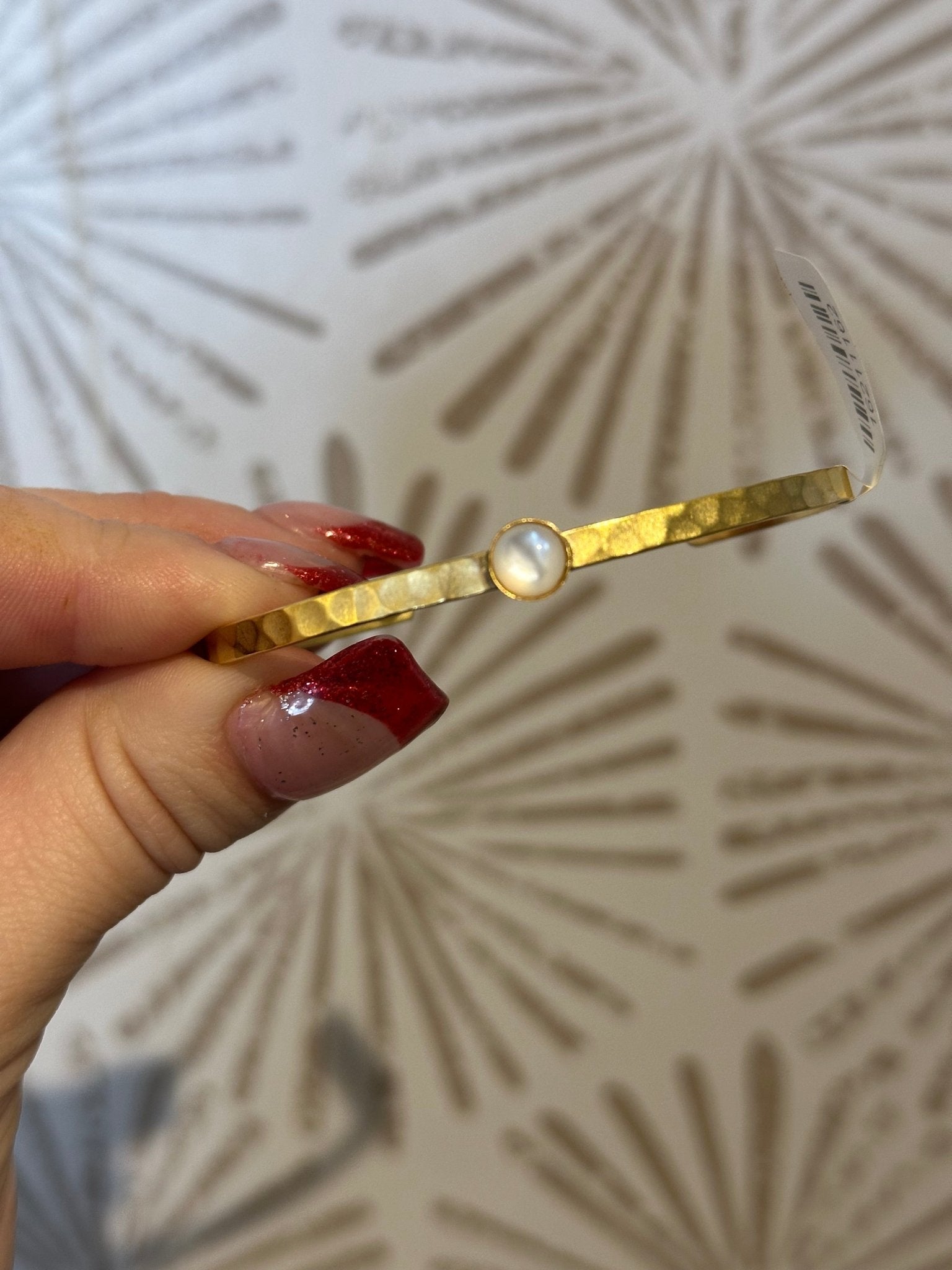Delicate yet distinctive, this bracelet is designed to become a go-to favorite. Whether worn as a gentle statement on its own or layered into a curated stack, the Mother of Pearl Hammered Cuff Bracelet brings warmth, texture, and effortless beauty to every moment. Handcrafted in Sonoma, California, it’s a piece you’ll reach for again and again—classic, versatile, and quietly stunning.
