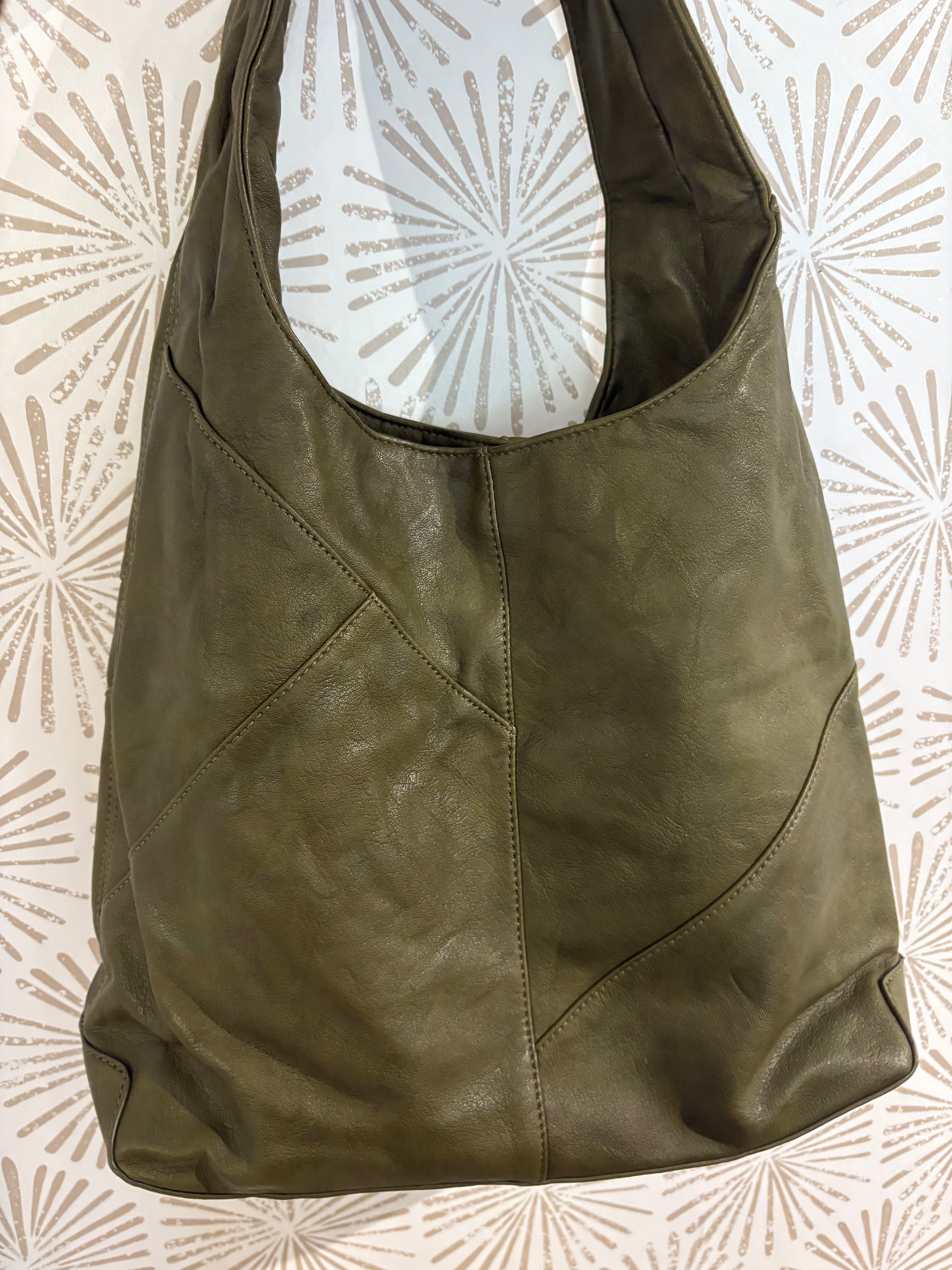 Our best-selling hobo shape is updated with retro puzzle patchwork seaming to add a boho feel to your look. Crafted in softly tumbled vegan leather in neutrals perfect for fall, this bag is a great value featuring a removable inner pouch that can be removed and worn separately as a compact crossbody bag.Product Details