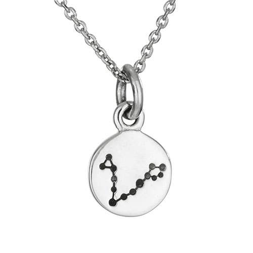 Sterling silver Pisces zodiac constellation pendant on 17 in sterling silver chain. Pendant is approximately 1/4" diameter.