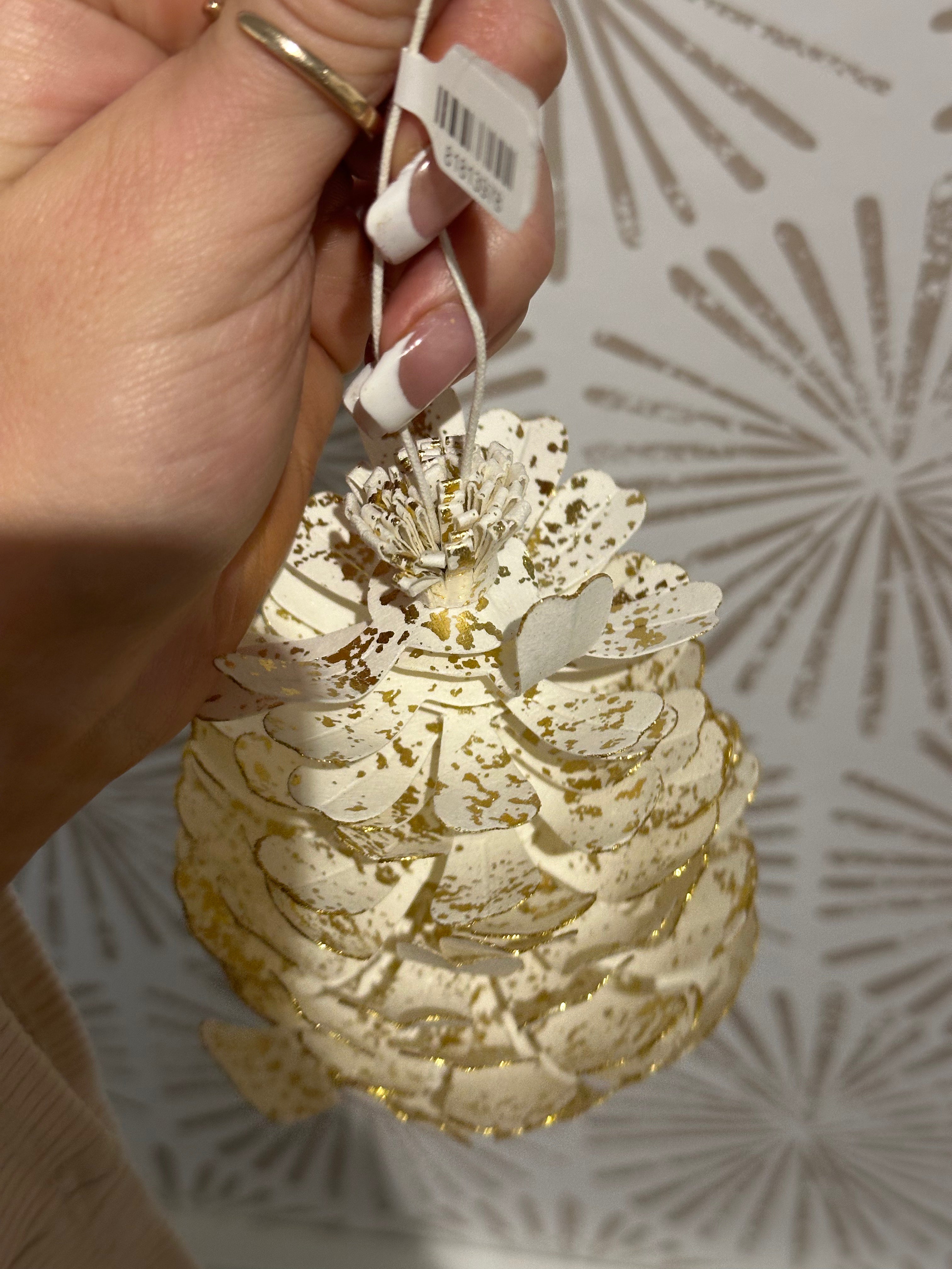 Made entirely from paper, each pinecone is designed to mimic the organic layers and dimensional structure found in nature, while still offering a lightweight feel that makes decorating easy and stress-free. Its sculptural, folded-paper form brings subtle movement and depth to your holiday tree, garland, wreath, or mantel arrangement. Whether your seasonal style leans rustic farmhouse, modern minimalism, or classic Christmas tradition, this ornament blends effortlessly, enhancing your décor without overpowering it.