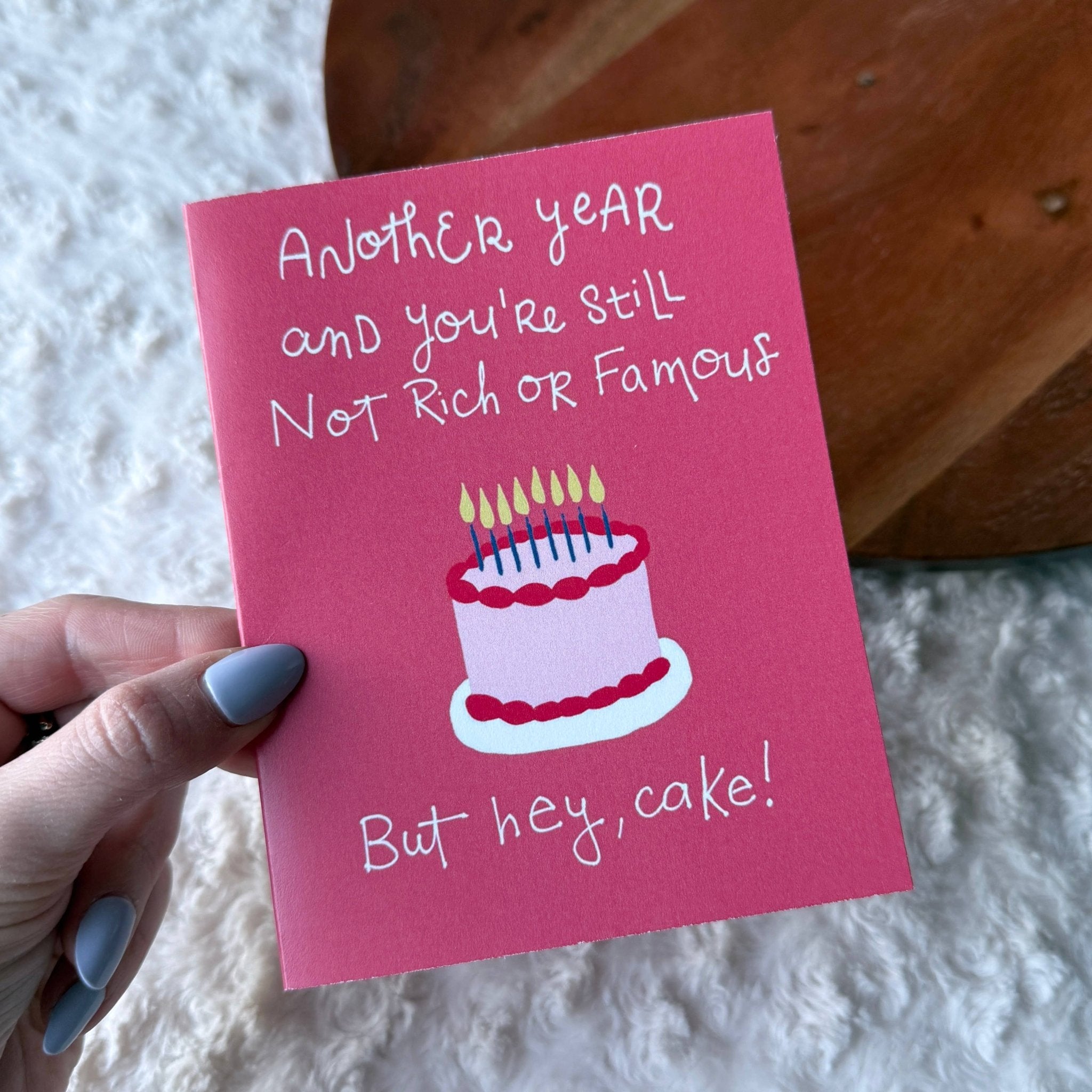 Put it bluntly with this hilarious birthday card which reads "another year and you're still not rich or famous, but hey cake!"